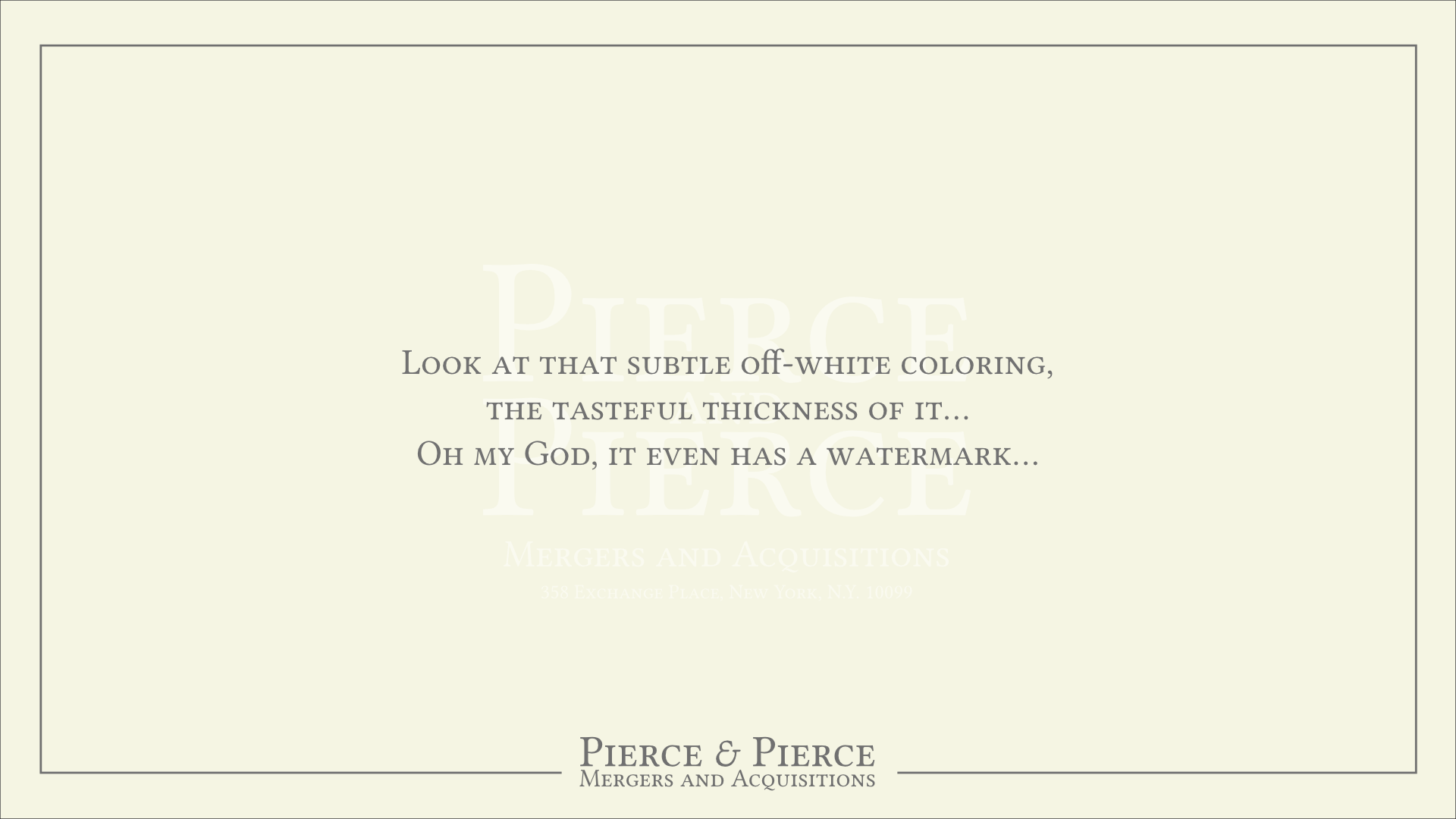 2125556342 Pierce Pierce And Paul Vice President 358 Exchange Pla Look At That Subtle Off White Colouring The Tasteful Thickness Of It Oh My God It Even Has A Water Mark Drops